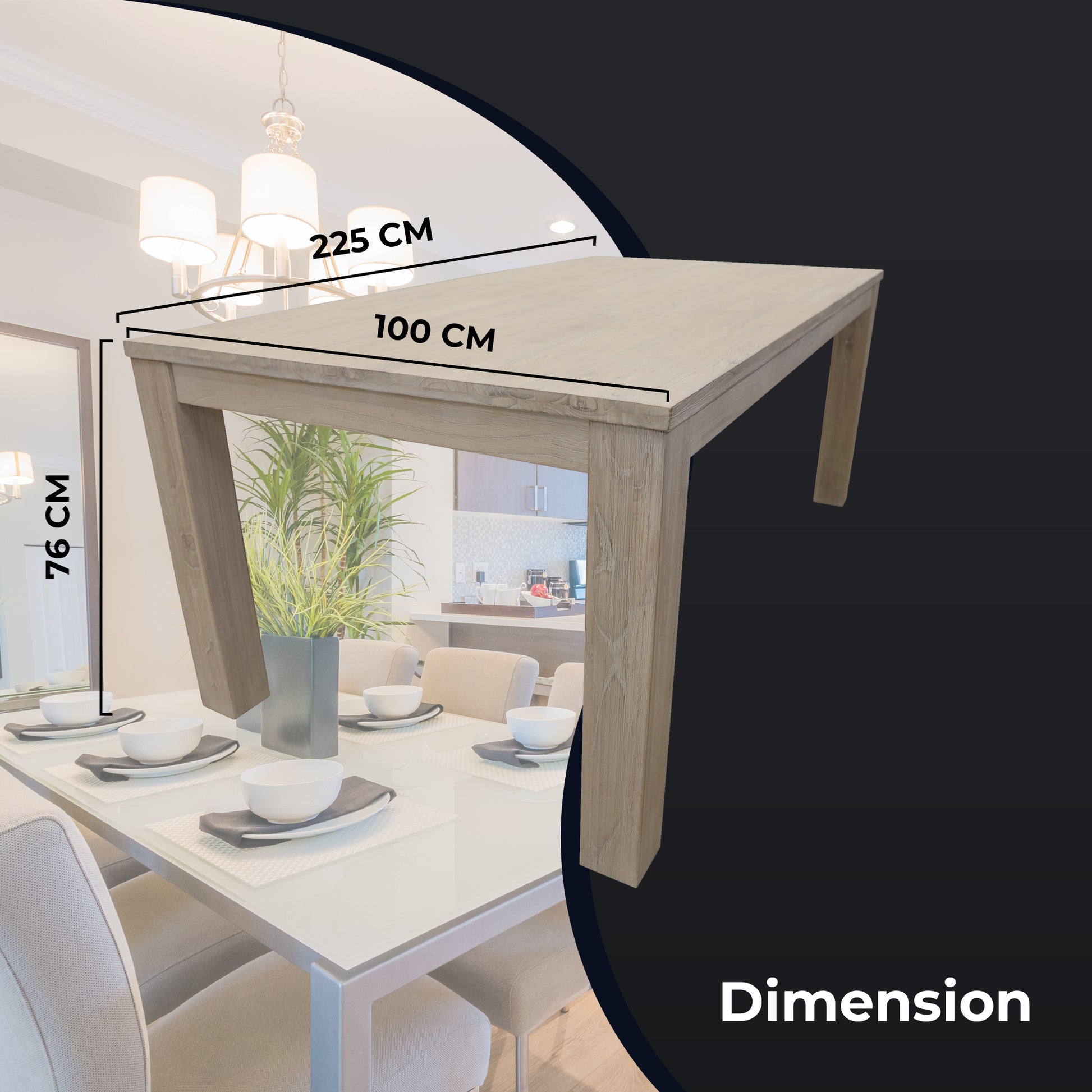 Dining table: W225 x D100 x H76 CM